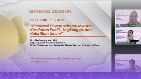 Samarinda-antara kesehatan manusia, hewan, dan lingkungan menjadi fokus utama dalam Sharing Session Episode 107 yang diselenggarakan Badan...