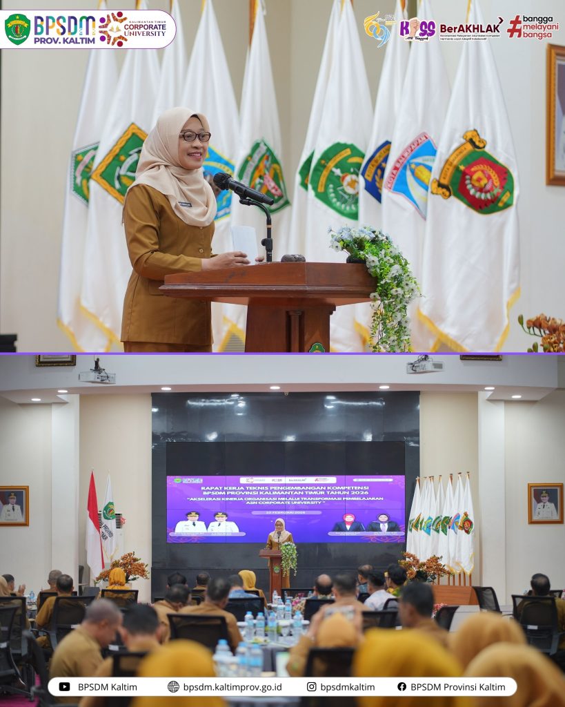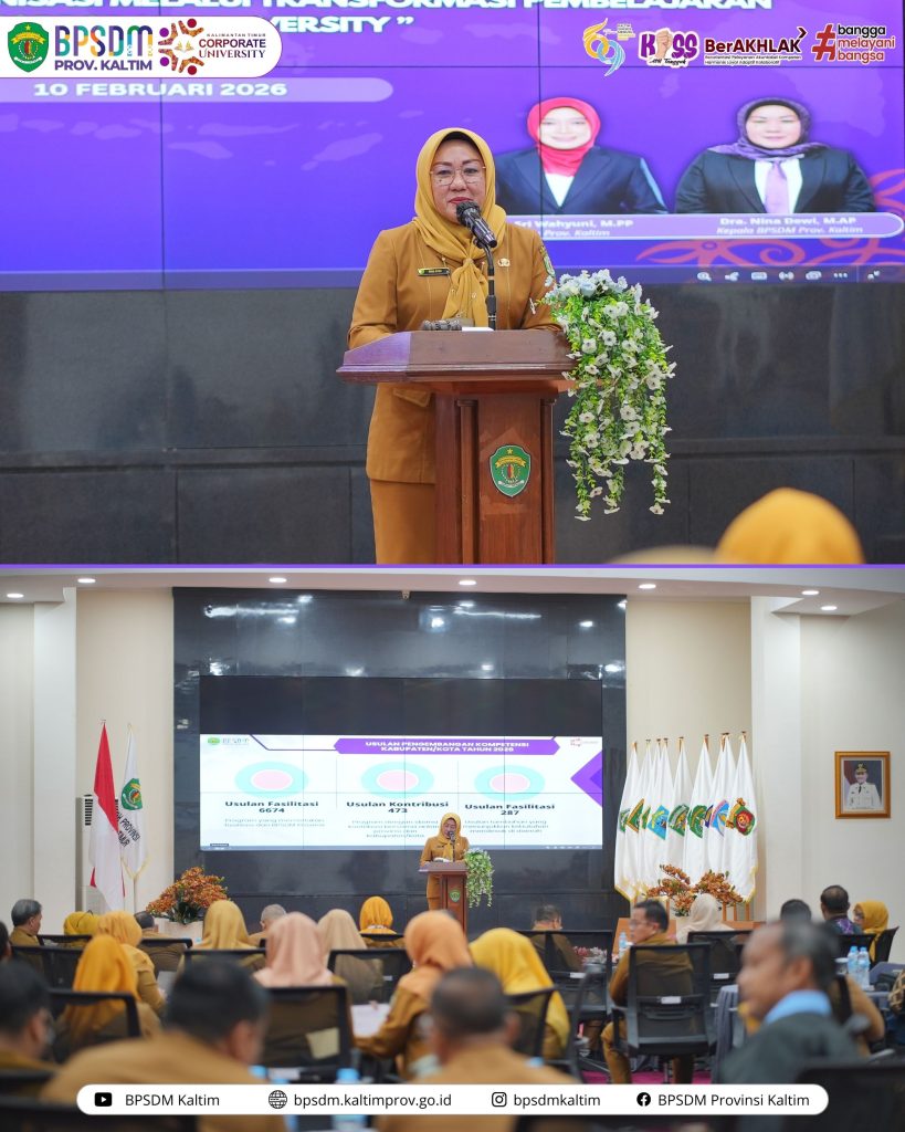 Samarinda-Pemerintah Provinsi Kalimantan Timur terus memperkuat pengembangan kompetensi aparatur sipil negara (ASN) sebagai fondasi peningkatan kinerja birokrasi. Komitmen tersebut ditegaskan melalui Rapat Kerja Teknis (Rakernis) Pengembangan Kompetensi BPSDM Provinsi Kalimantan Timur Tahun 2026 yang secara resmi dibuka oleh Gubernur Kalimantan Timur, diwakili Sekretaris Daerah Sri Wahyuni, di Aula Utama BPSDM Provinsi Kalimantan Timur, Selasa (10/2/26).