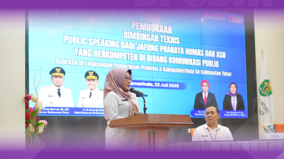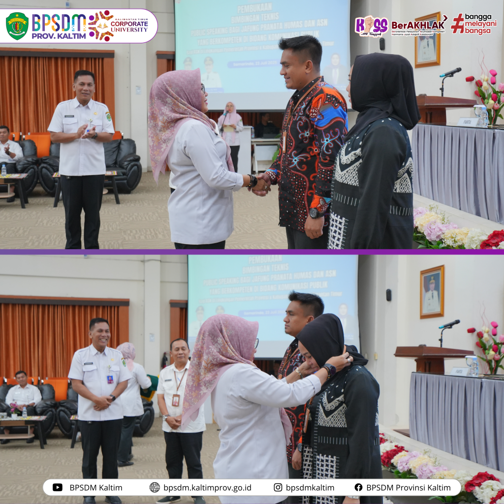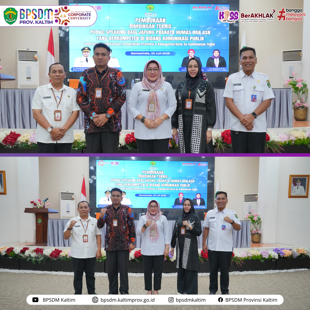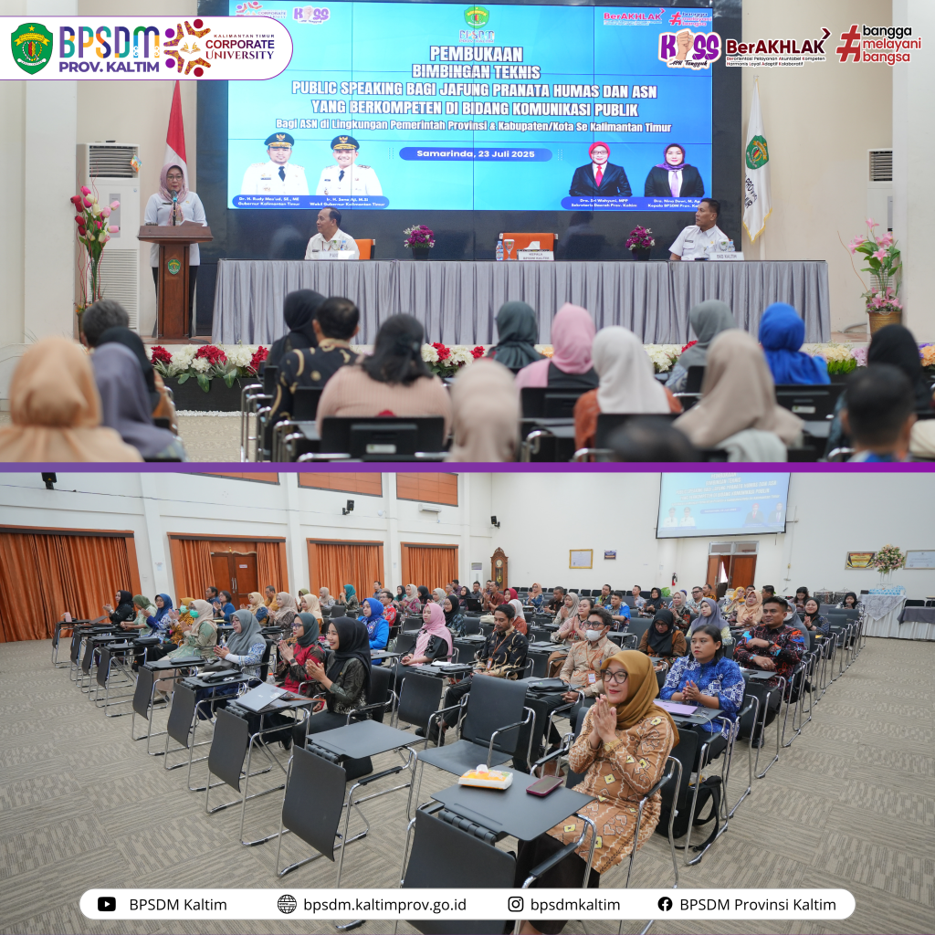 Disampaikan Dra Nina Dewi M.AP selaku Kepala Badan Pengembangan Sumber Daya Manusia Provinsi Kalimantan Timur Corporate University (BPSDM Kaltim CorpU) saat membuka Bimbingan Teknis Public Speaking bagi Jabatan Fungsional Pranata Humas dan Pengelola Kehumasan Lingkup Pemerintah Provinsi dan Kabupaten/Kota Se-Kalimantan Timur.