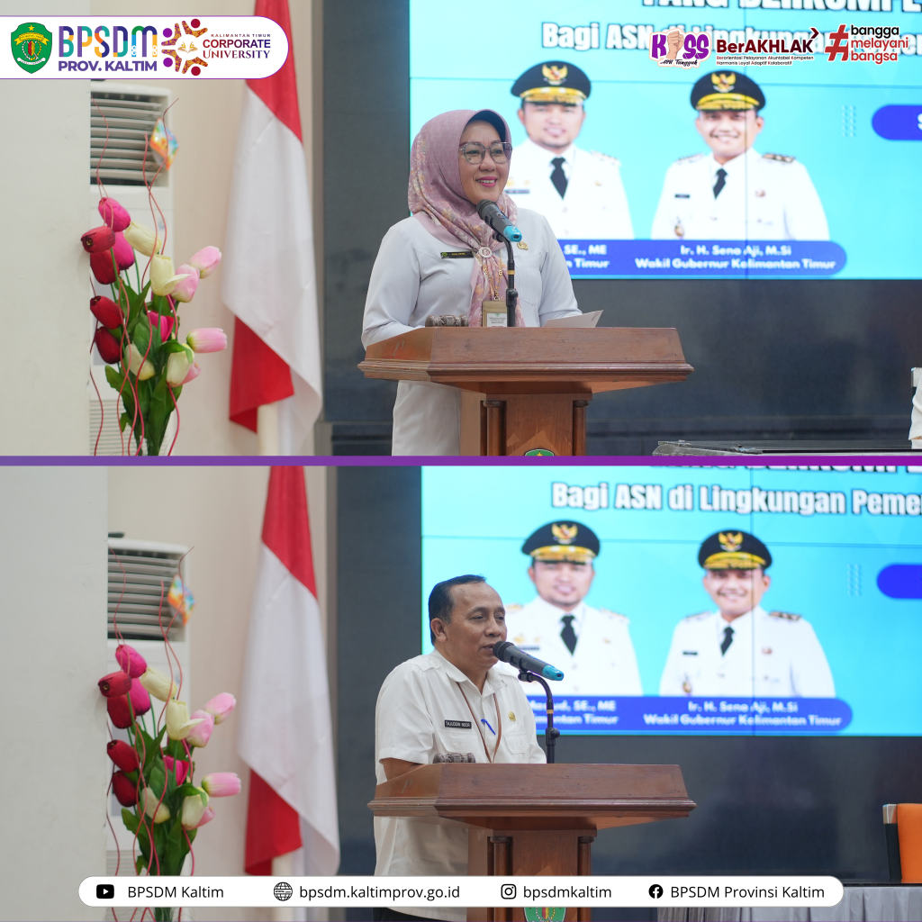 Tampak hadir Kepala BKD Kaltim yang diwakili Kepala Bidang Pengembangan ASN Sudarwanto, Plh Kepala Bidang Pengembangan Kompetensi BPSDM Kaltim Indri Widayanti, Analis Pengembangan Kompetensi Ahli Pertama Ramadhan serta Panitia Pelaksana BPSDM Kaltim.