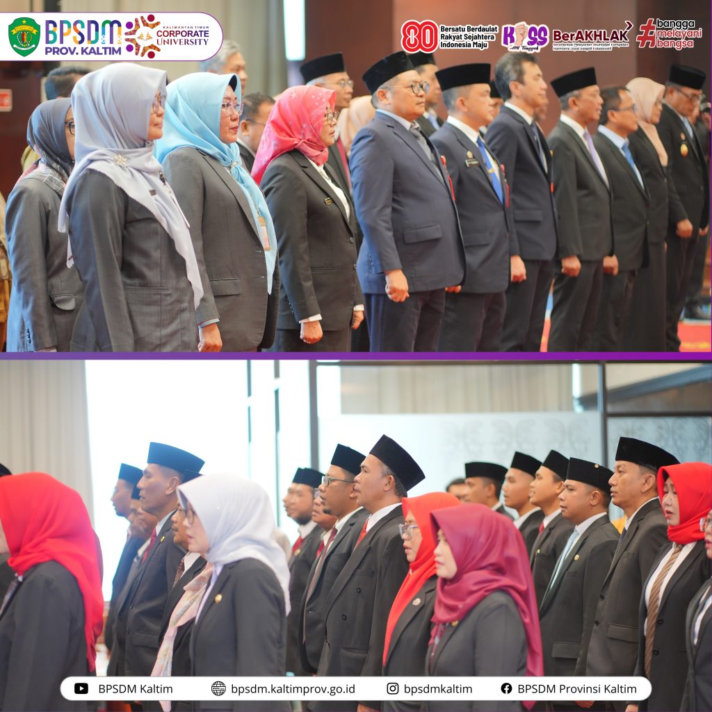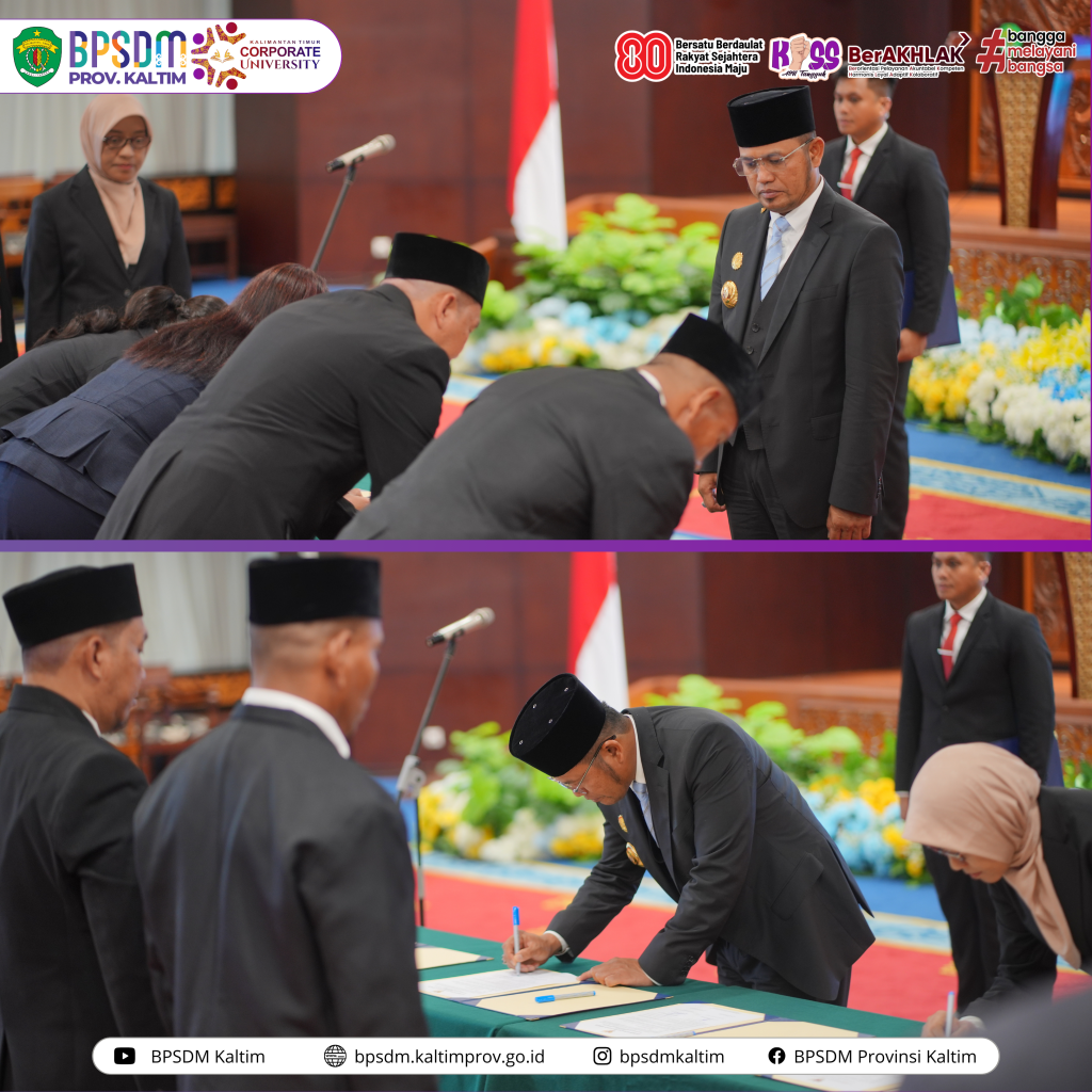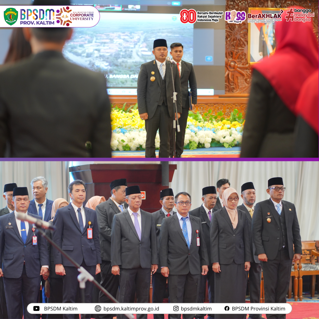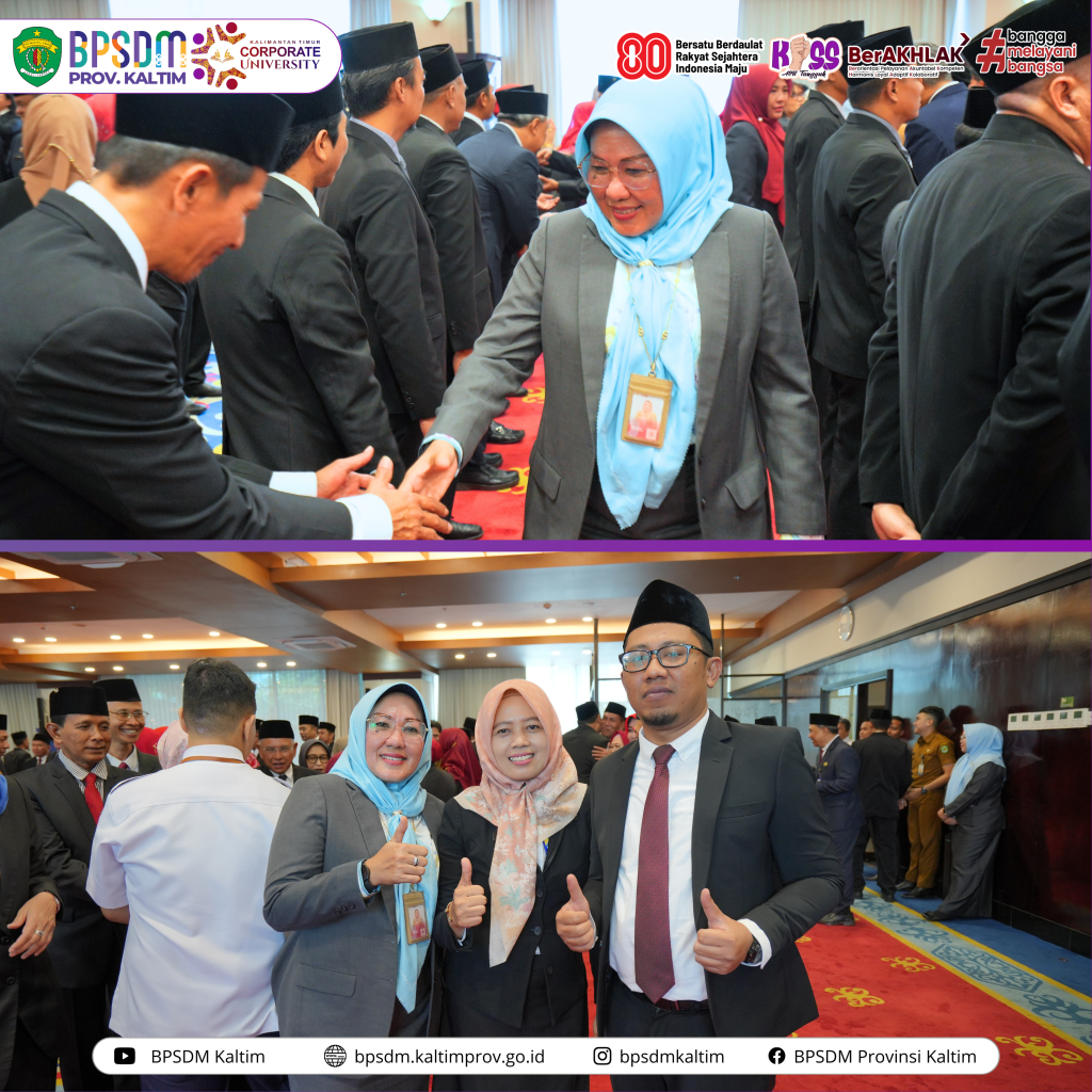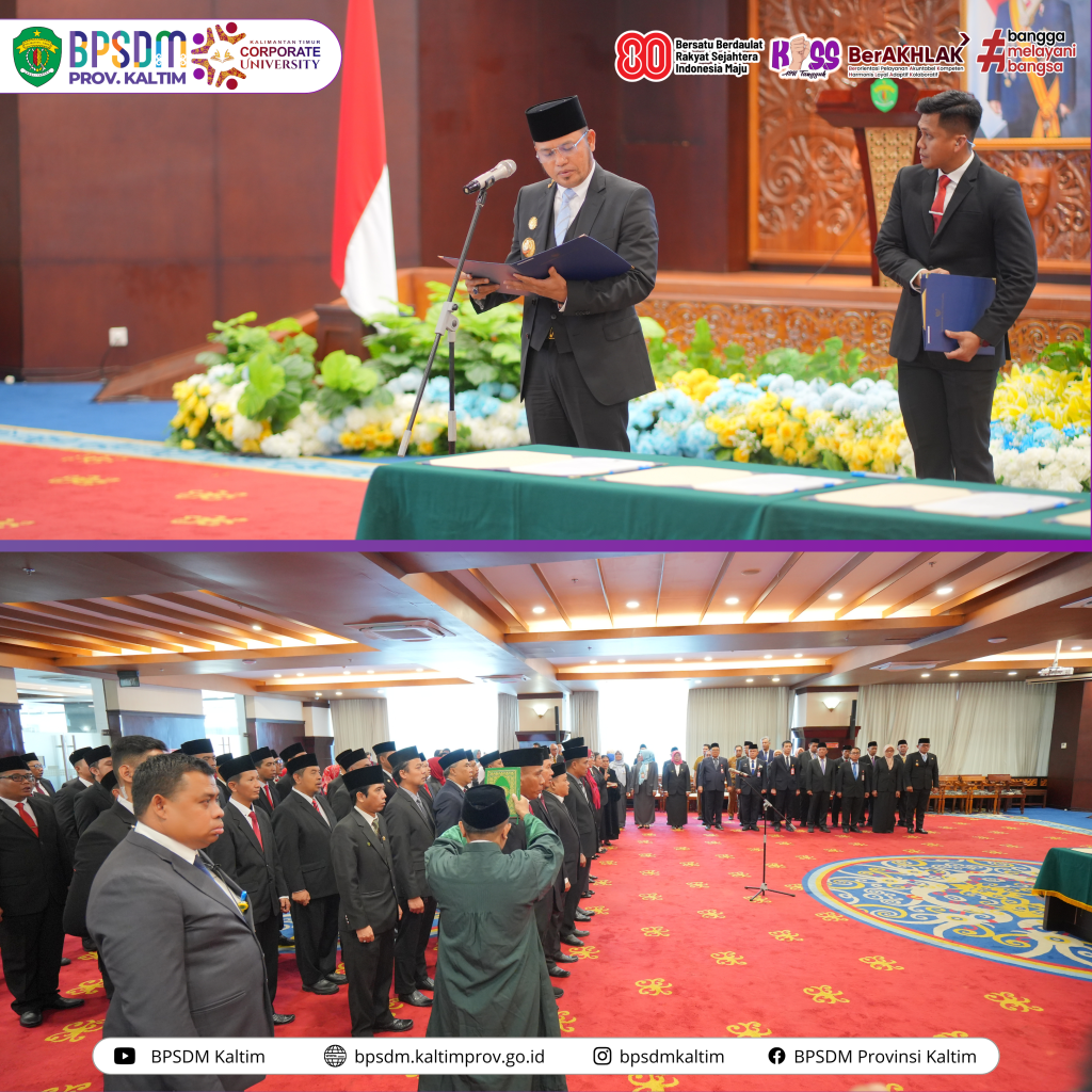 Samarinda-Kepala Badan Pengembangan Sumber Daya Manusia Provinsi Kalimantan Timur Dra Nina Dewi menghadiri pelantikan dan pengambilan sumpah kepada 71 pejabat di lingkungan Pemerintah Provinsi Kalimantan Timur oleh Gubernur Kaltim Dr H Rudy Mas’ud (Harum), di Ruang Ruhui Rahayu Kantor Gubernur, Senin (29/09/25).