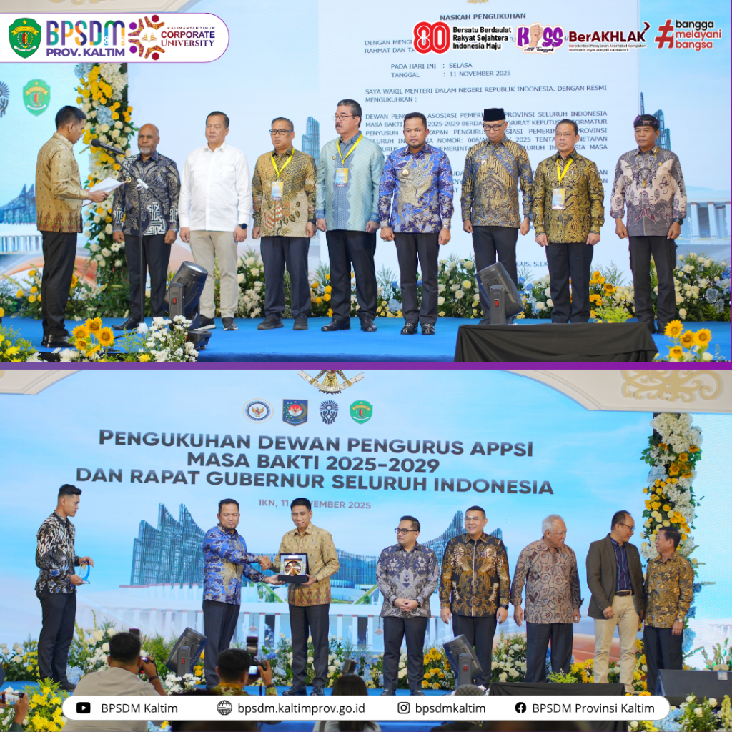 Ibu Kota Nusantara-Gubernur Kalimantan Timur Dr H Rudy Mas’ud (Harum) resmi dikukuhkan sebagai Ketua Asosiasi Pemerintah Provinsi Seluruh Indonesia (APPSI) masa bakti 2025–2029. Pengukuhan dilakukan oleh Wakil Menteri Dalam Negeri Ahmad Wiyagus mewakili Menteri Dalam Negeri Tito Karnavian di Aula Kemenko 1, Ibu Kota Nusantara (IKN), Selasa (11/11/25).