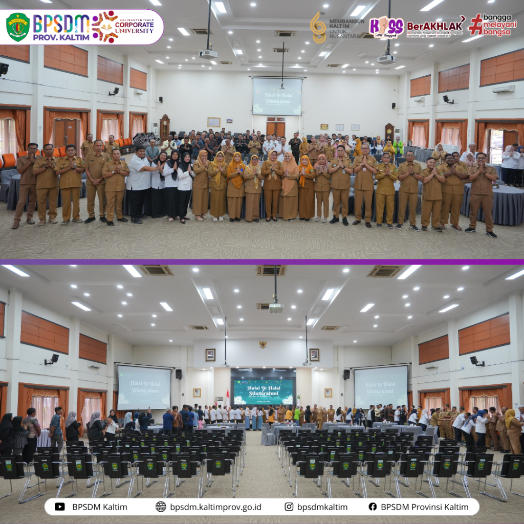 Samarinda-Masih dalam suasana hangat perayaan Idul Fitri 1446 H, Badan Pengembangan Sumber Daya Manusia Provinsi Kalimantan Timur Corporate University (BPSDM Kaltim CorpU) menyelenggarakan acara Halal Bihalal guna mempererat tali silaturahmi keluarga besar BPSDM Kaltim yang dihadiri oleh Pegawai di lingkup BPSDM Provinsi Kalimantan Timur, Selasa (8/4/25).