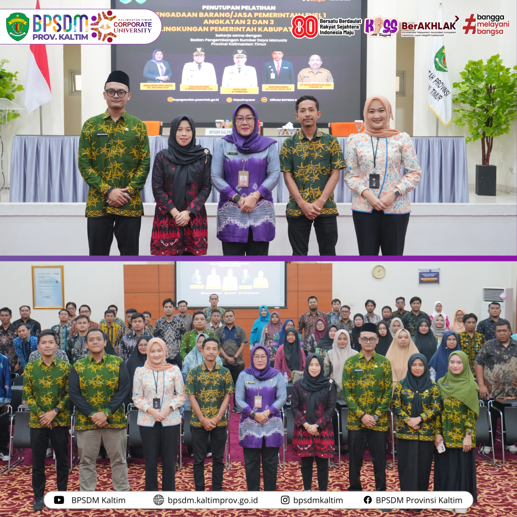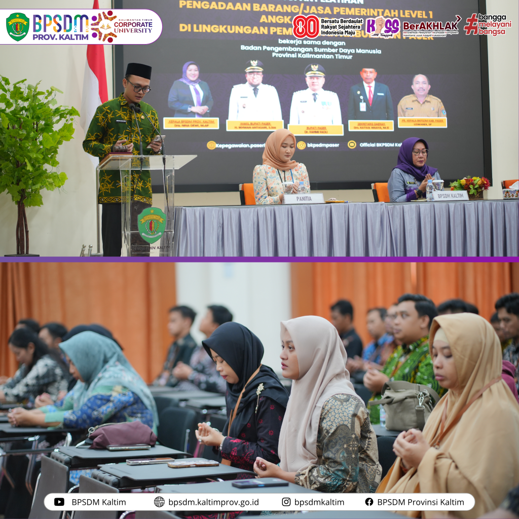 Samarinda-Kepala BPSDM Provinsi Kalimantan Timur, Dra. Nina Dewi, M.AP, menegaskan pentingnya integritas, profesionalisme, dan komitmen aparatur dalam pengadaan barang/jasa pemerintah saat menyampaikan sambutan pada Penutupan Pelatihan dan Uji Kompetensi PBJ Level-1 Kelas Fasilitasi Kabupaten Paser Angkatan 2 dan 3. Ia menekankan bahwa PBJ merupakan proses strategis yang harus dilaksanakan secara transparan, akuntabel, dan berorientasi pada kepentingan publik.