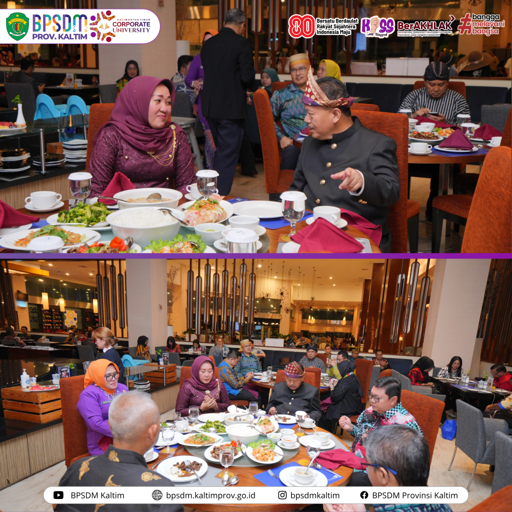 Balikpapan-Suasana hangat dan penuh keakraban mewarnai jamuan makan malam Rapat Koordinasi Nasional (Rakornas) Pengembangan Sumber Daya Manusia Aparatur Pemerintahan Dalam Negeri Tahun 2025 yang digelar di Kota Balikpapan, Provinsi Kalimantan Timur. Rabu Malam (12/11/25)