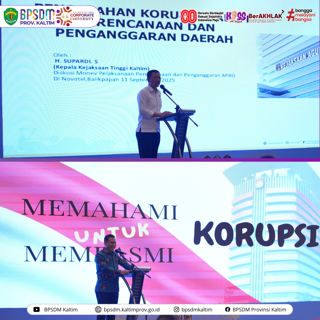 Acara ini menghadirkan narasumber yaitu Ketua KPK RI Setyo Budiyanto yang membawakan materi “Pemberantasan Korupsi Menuju Indonesia Emas 2045”, serta Kajati Kaltim Prof Supardi dengan materi “Pencegahan Korupsi dalam Perencanaan dan Penganggaran Daerah”.