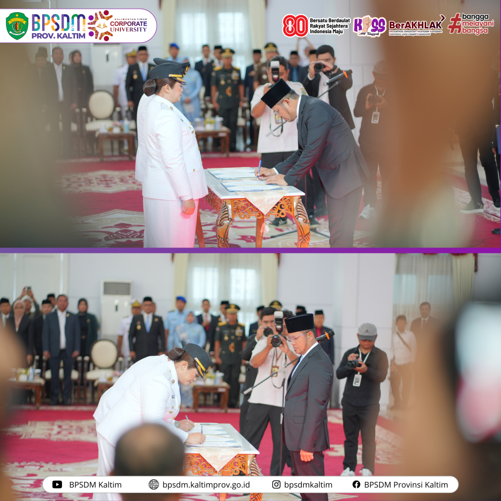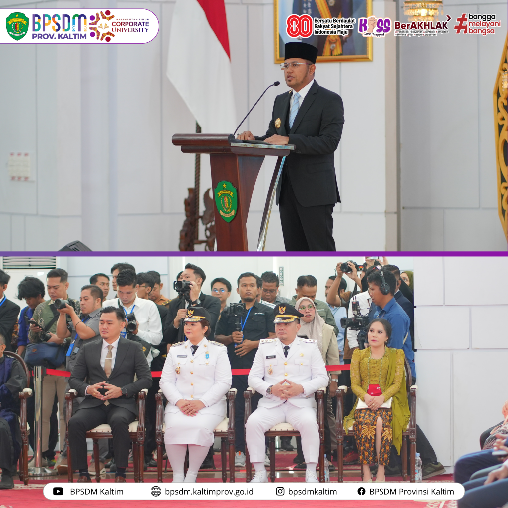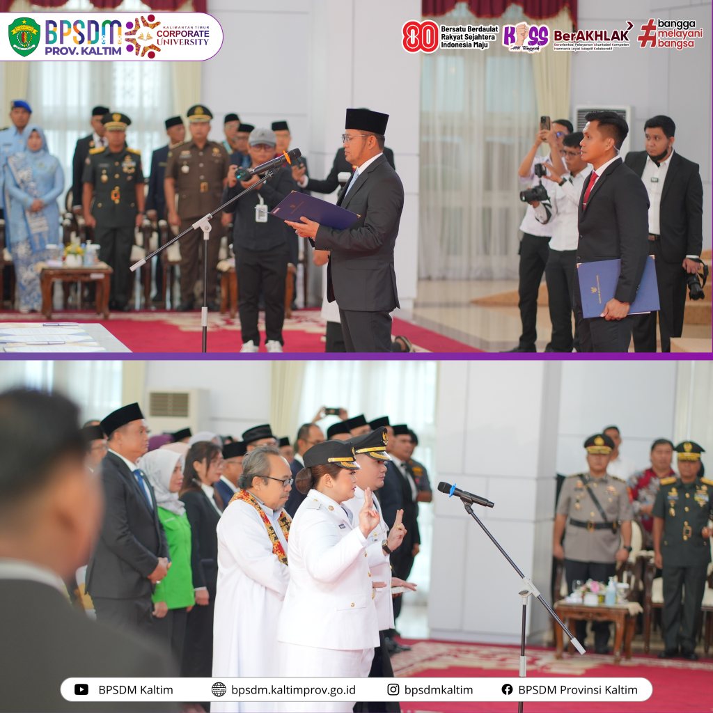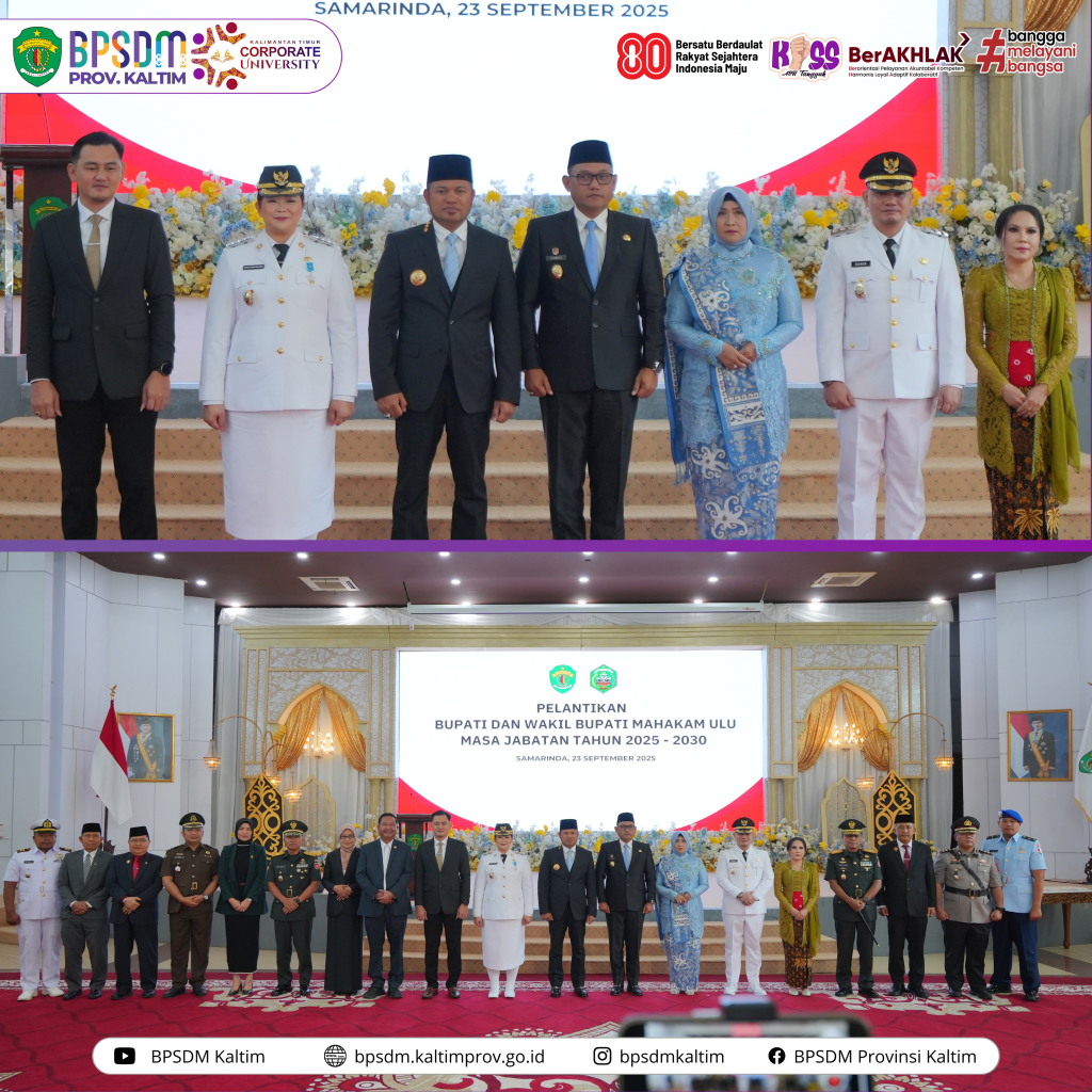 Samarinda-Kepala Badan Pengembangan Sumber Daya Manusia Provinsi Kalimantan Timur, Dra Nina Dewi M.AP menghadiri pelantikan Angela Idang Belawan dan Suhuk sebagai Bupati dan Wakil Bupati Mahakam Ulu periode 2025–2030 oleh Gubernur Kalimantan Timur H Rudy Mas’ud (Harum) yang berlangsung di Pendopo Lamin Etam, Kompleks Kantor Gubernur Kaltim, Selasa (23/09/25).