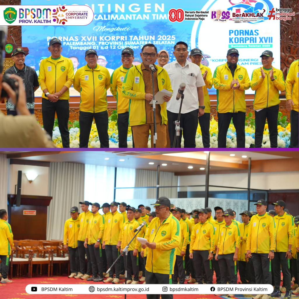 Samarinda-Wakil Gubernur Kalimantan Timur H Seno Aji secara resmi melepas keberangkatan Kontingen Kalimantan Timur yang akan berlaga pada Pekan Olahraga Nasional (Pornas) XVII Korpri Tahun 2025 di Sumatera Selatan. Acara pelepasan berlangsung di Ruang Ruhui Rahayu Kantor Gubernur Kaltim, Selasa (30/9/2025).