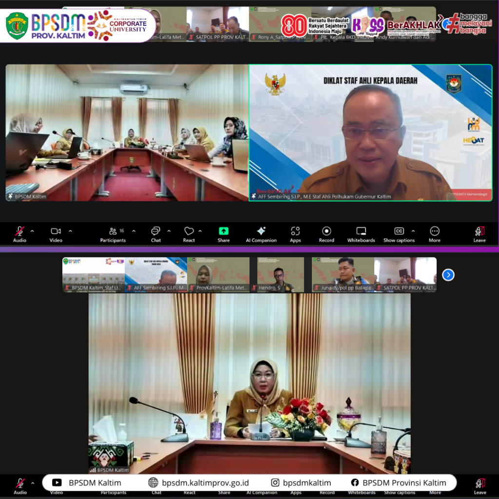 Nina Dewi juga menyampaikan terima kasih atas partisipasi peserta dan narasumber, berharap kedepannya dapat terus berperan aktif bersama BPSDM Kaltim CorpU dalam mengembangkan kompetensi Sumber Daya Manusia.