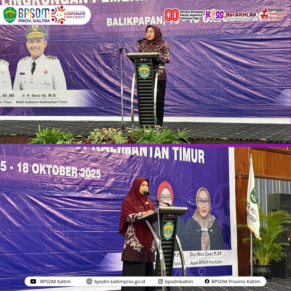 Disampaikan Dra Nina Dewi M.AP Selaku Kepala BPSDM Provinsi Kaltim saat membacakan Sambutan Gubernur Kalimantan Timur dalam Pembukaan Pendalaman Tugas Anggota DPRD DPRD Kabupaten Paser, Kutai Kartanegara, Penajam Paser Utara, dan Kota Bontang Di Lingkungan Pemeritah Provinsi Kalimantan Timur. Rabu (15/10/25)