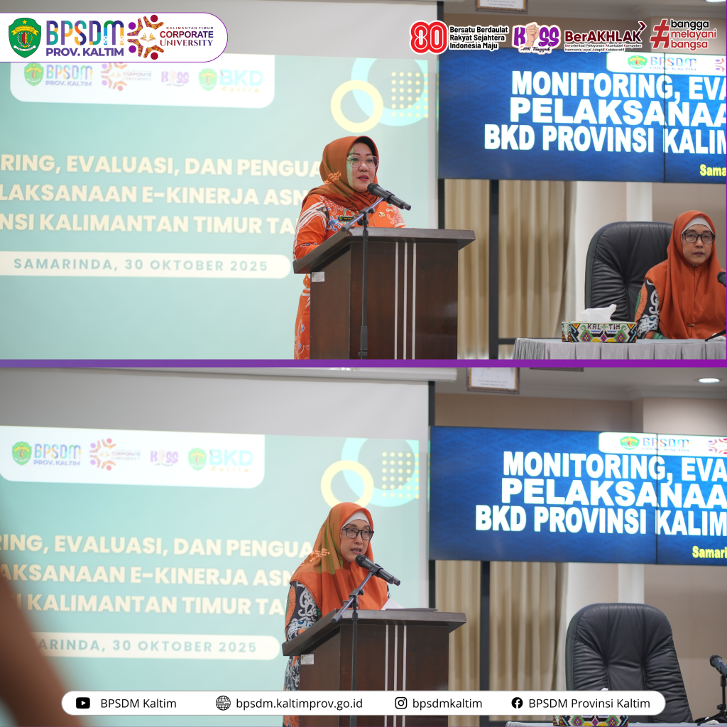 Ia menambahkan bahwa penguatan kinerja tidak dapat dilepaskan dari pengembangan kompetensi ASN. BPSDM Kaltim terus mendorong sinergi lintas perangkat daerah melalui Kaltim Corpu sebagai wadah pembelajaran kolaboratif dan berkelanjutan.