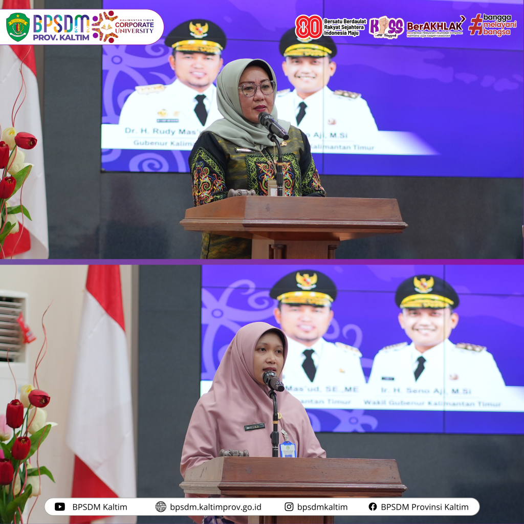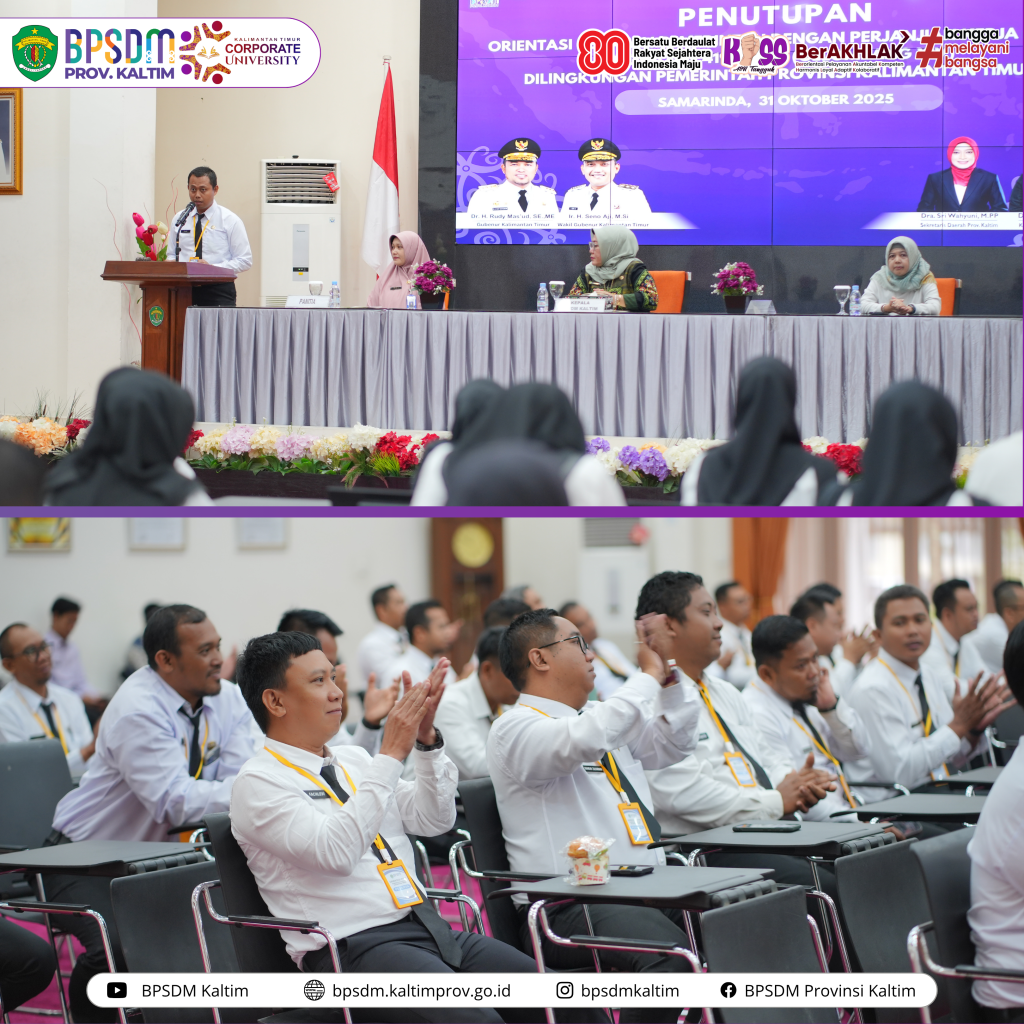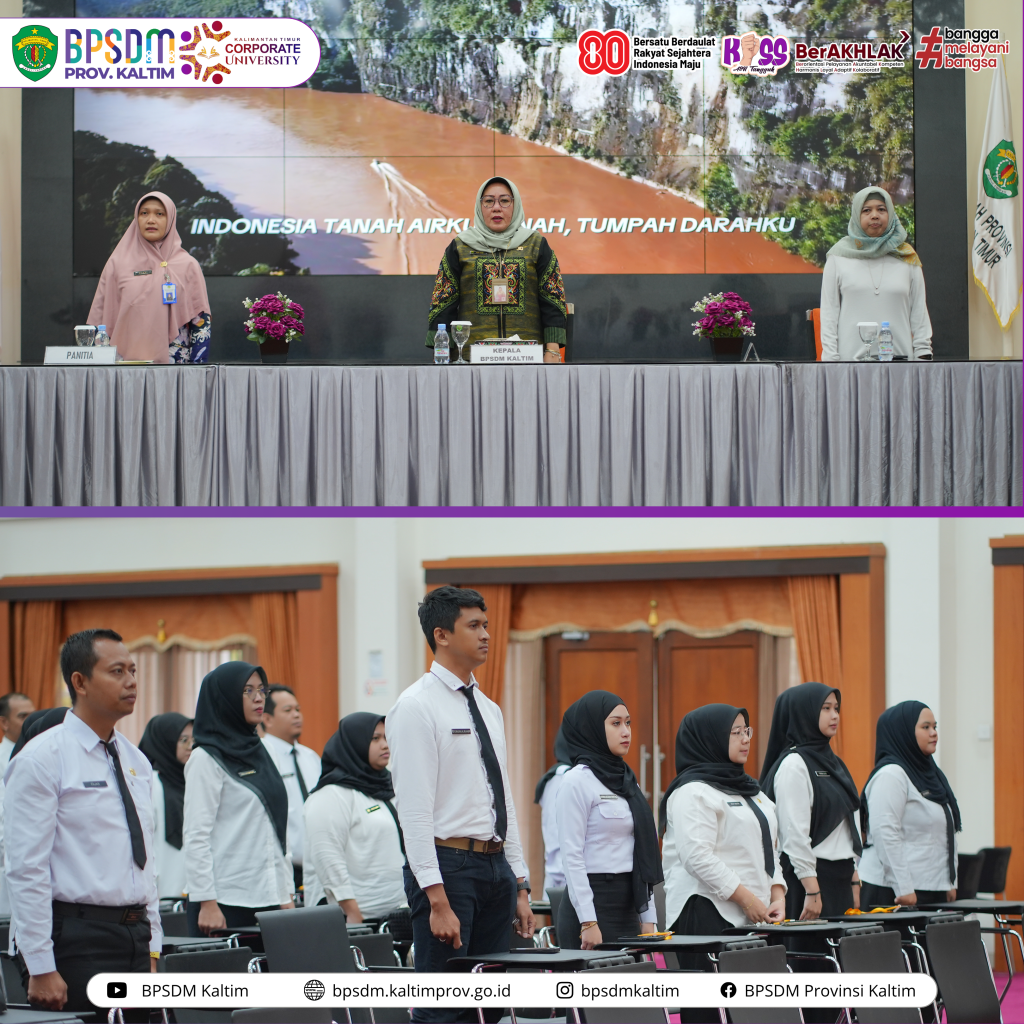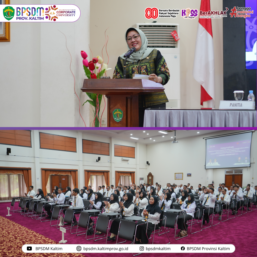 Dalam sambutannya, Kepala BPSDM Kaltim Dra. Nina Dewi, M.AP menyampaikan rasa syukur atas terselenggaranya kegiatan dengan lancar dan ucapan selamat kepada seluruh peserta yang telah menyelesaikan orientasi dengan baik.