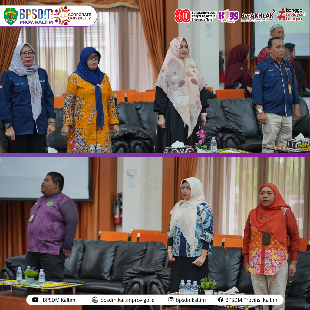Acara yang digelar di Aula Utama BPSDM Kaltim ini turut dihadiri oleh Kepala Bidang PKMF Rina Kusharyanti, Kepala Bidang SKPK Siti Djaitun, Kepala Bidang PKT Apriyana Rachmawaty, para Widyaiswara, serta Analis Pengembangan Kompetensi di lingkungan BPSDM Kaltim.