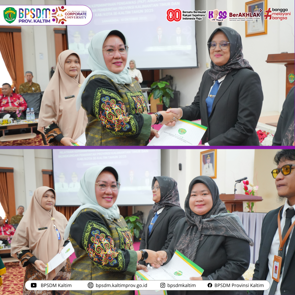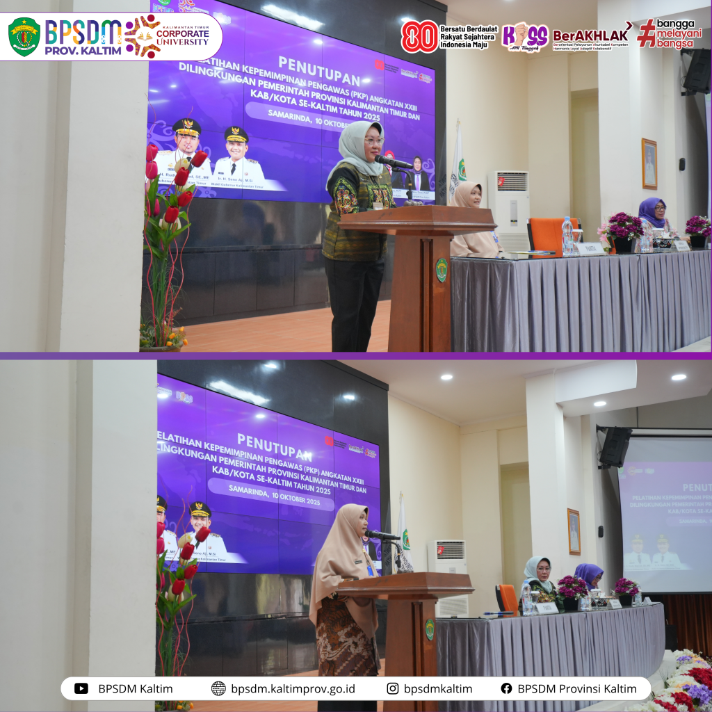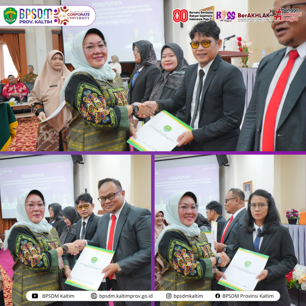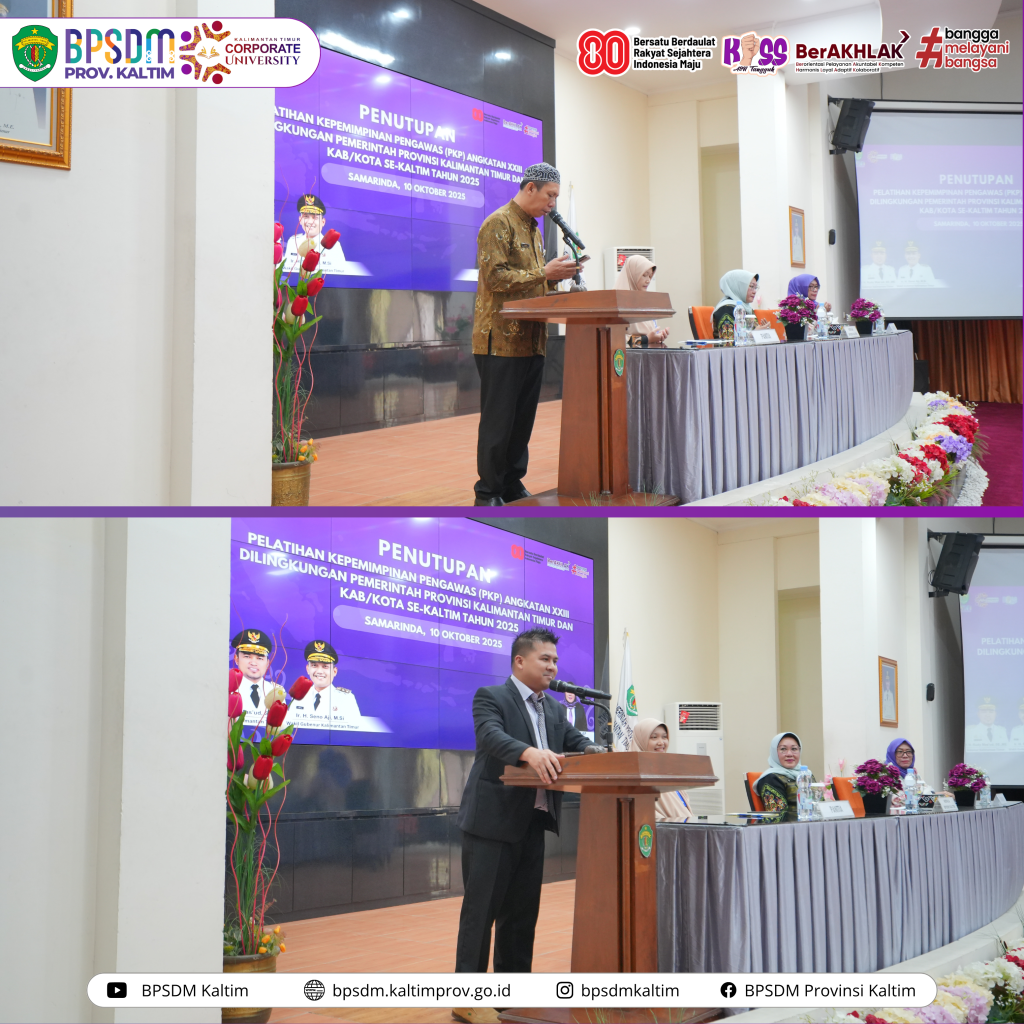 Samarrinda-Sebanyak 40 orang peserta Pelatihan Kepemimpinan Pengawas (PKP) yang tergabung dalam Angkatan XXIII, mengakhiri kegiatan pelatihan. Peserta pelatihan selain berasal dari para pejabat eselon IV atau pejabat pengawas dari lingkup Pemerintah Provinsi Kaltim, juga berasal dari Pemerintah Kabupaten/Kota se Kaltim. Pelatihan yang dilaksanakn dari tanggal 4 Juni hingga 10 Oktober 2025 dilakukan secara blended learning (sistem pembelajaran campuran), yaitu secara daring (dalam jaringan) atau online dan secara klasikal (tatap muka atau luring/luar jaringan atau offline). Ada yang dilakukan secara mandiri, jadi peserta bisa belajar secara mandiri melalui modul yang disediakan oleh Panitia Penyelenggara secara online.