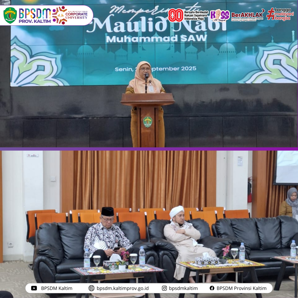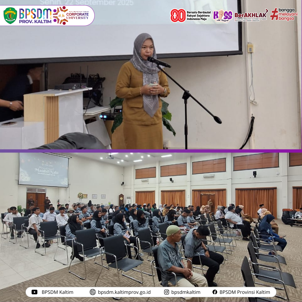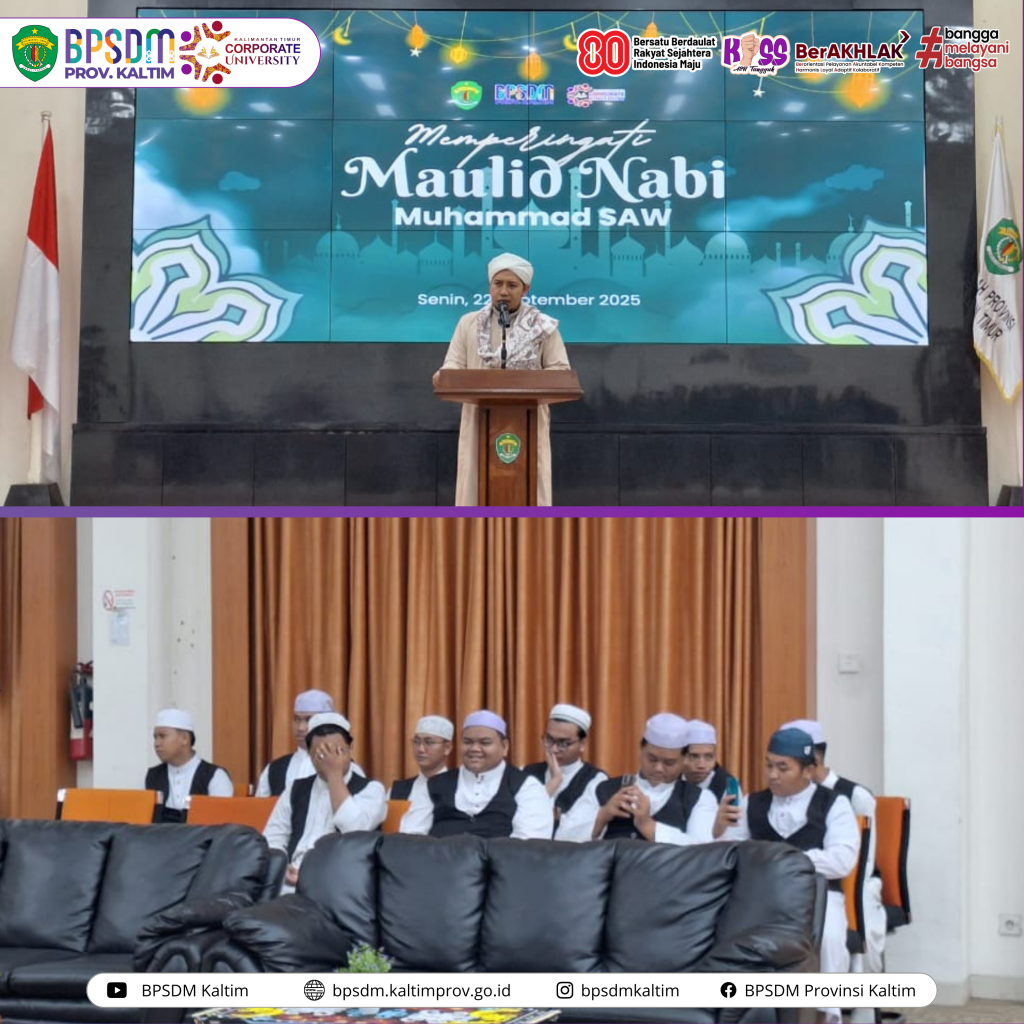 Samarinda-BPSDM Provinsi Kalimantan Timur menggelar peringatan Maulid Nabi Muhammad SAW 1475 H, bertempat di Aula Utama BPSDM Prov. Kaltim, Senin (22/09/24).
