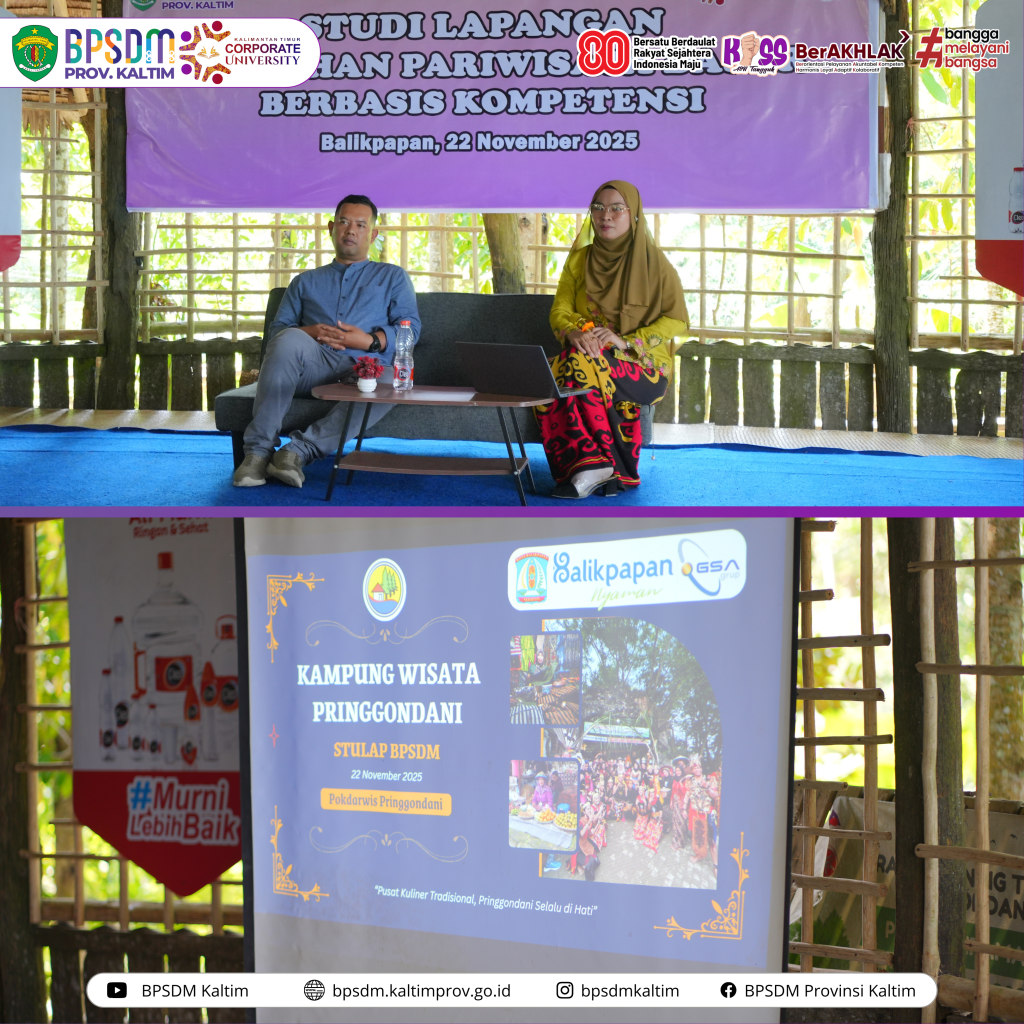 Balikpapan-Upaya meningkatkan kompetensi aparatur di sektor pariwisata kembali diperkuat oleh BPSDM Provinsi Kalimantan Timur melalui kegiatan studi lapangan di Kampung Wisata Pringgondani. Sabtu (22/11/25)