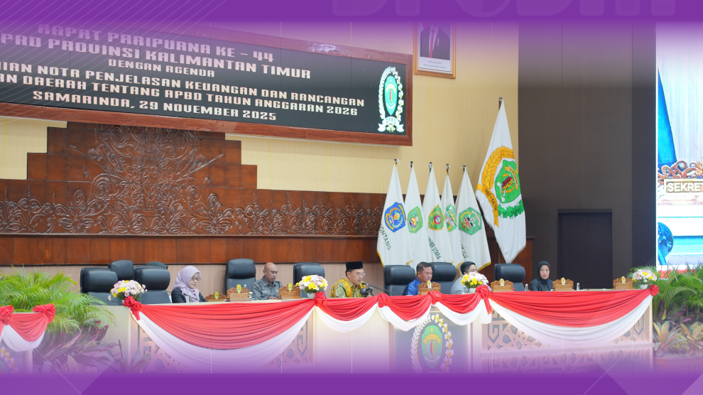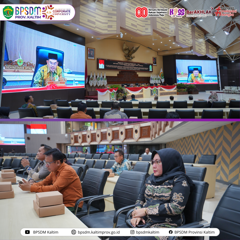 Samarinda-Dra. Nina Dewi M.AP selaku Kepala Badan Pengembangan Sumber Daya Manusia menghadiri Pembahasan penting mengenai Anggaran Pendapatan dan Belanja Daerah (APBD) Tahun Anggaran 2026 menjadi agenda utama dalam Rapat Paripurna ke-44 DPRD Kaltim yang berlangsung di Ruang Sidang Utama Karang Paci Samarinda, Sabtu (29/11/2025). Sekretaris Daerah Provinsi Kaltim Sri Wahyuni hadir mewakili Gubernur Kaltim. Turut hadir bersama unsur pimpinan dan 32 anggota dewan.