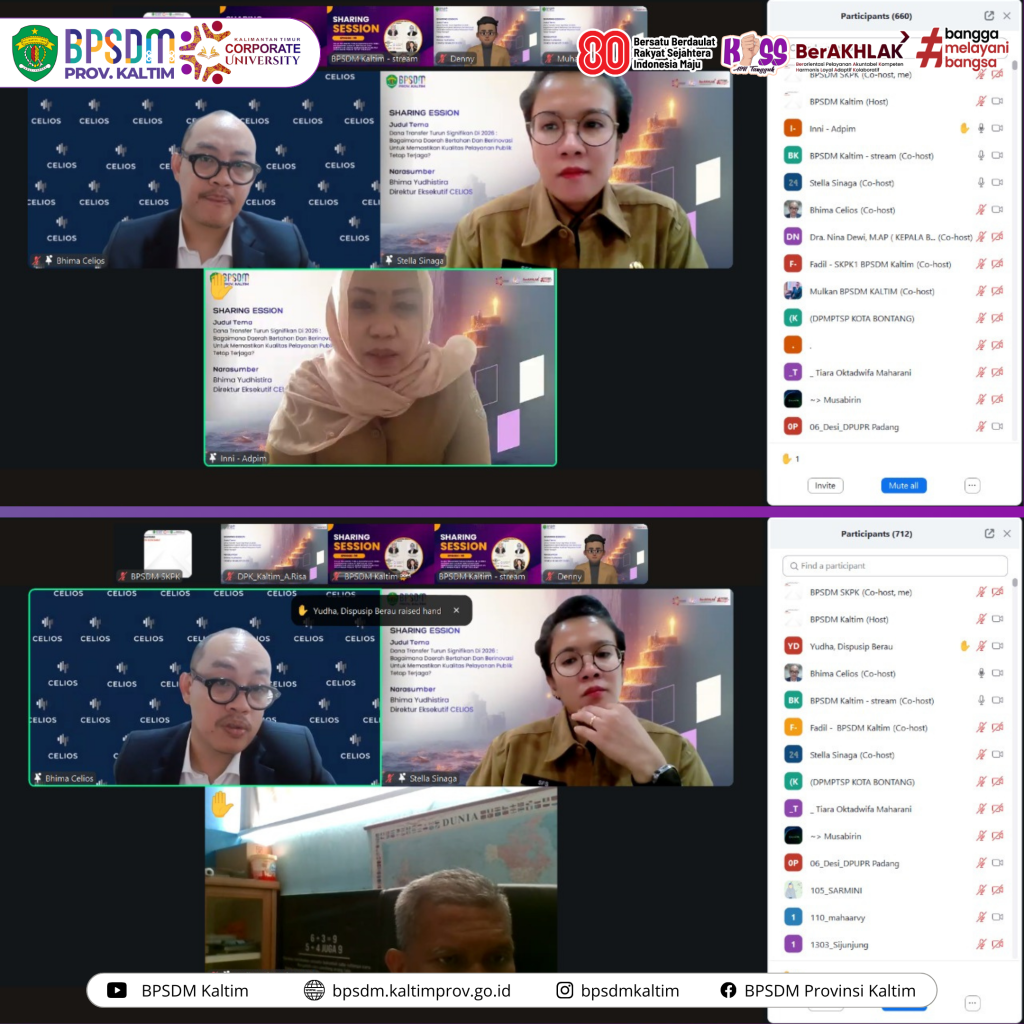Sharing Session episode ke-99 ini sekaligus menjadi momentum penguatan ekosistem pembelajaran berkelanjutan menuju pemerintahan daerah yang lebih responsif dan berdaya saing.