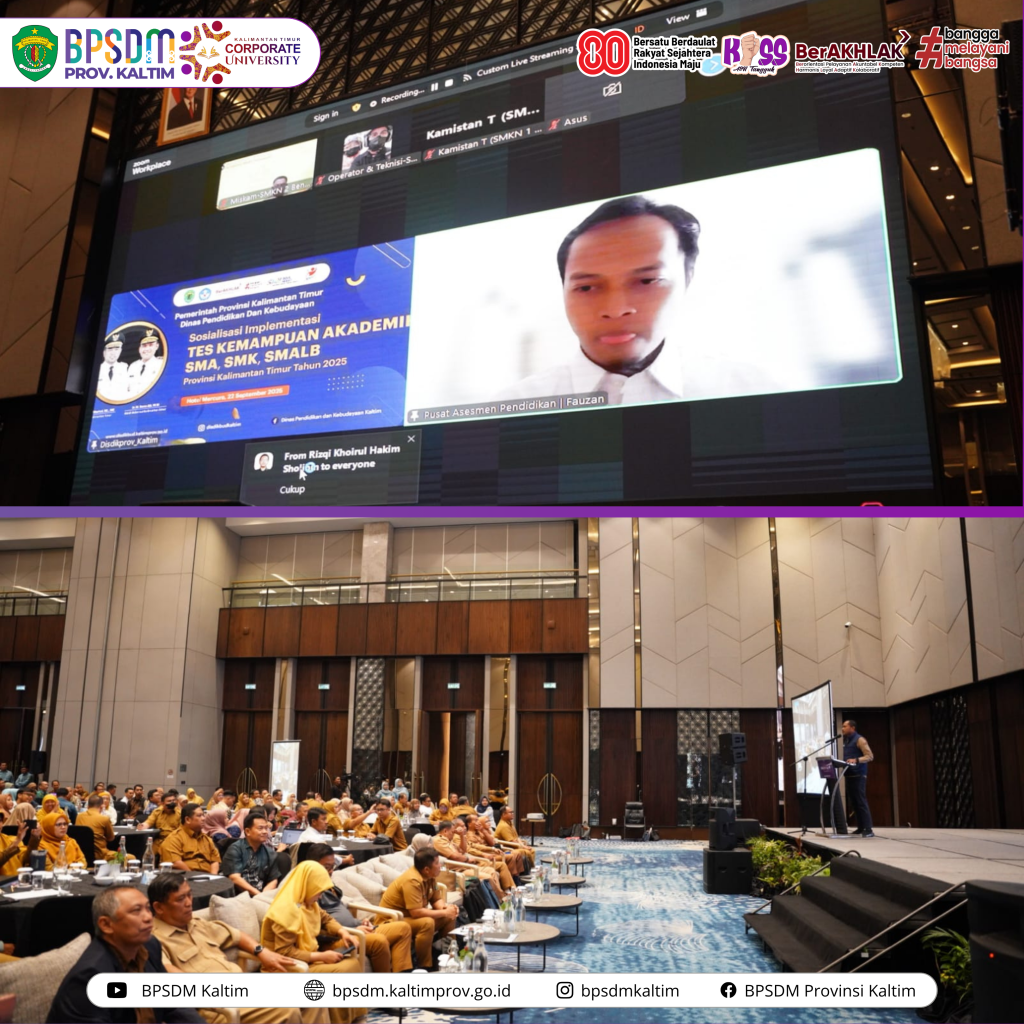 Samarinda-Pemerintah Provinsi Kalimantan Timur (Pemprov Kaltim) melalui Badan Pengembangan Sumber Daya Manusia (BPSDM) berkolaborasi dengan Dinas Pendidikan dan Kebudayaan (Disdikbud) melaksanakan Sosialisasi Implementasi Tes Kamampuan Akademik bagi Satuan Pendidikan Jenjang SMA, SMK dan SMALB Provinsi Kalimantan Timur yang terselenggara di Hotel Mercure Samarinda, Senin (22/09/25).