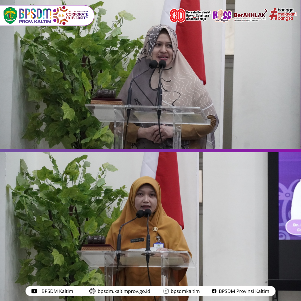 Kegiatan yang terselenggara di Aula Utama “Bagimu Negeri Jiwa Raga Kami” BPSDM Kaltim CorpU ini dibuka oleh Kepala BPSDM Kaltim yang diwakili Apriyana Rachmawaty selaku Kepala Bidang Pengembangan Kompetensi Teknis (PKT).